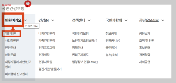 - 메인페이지 상단 >> [민원여기요 >> 개인민원] 선택