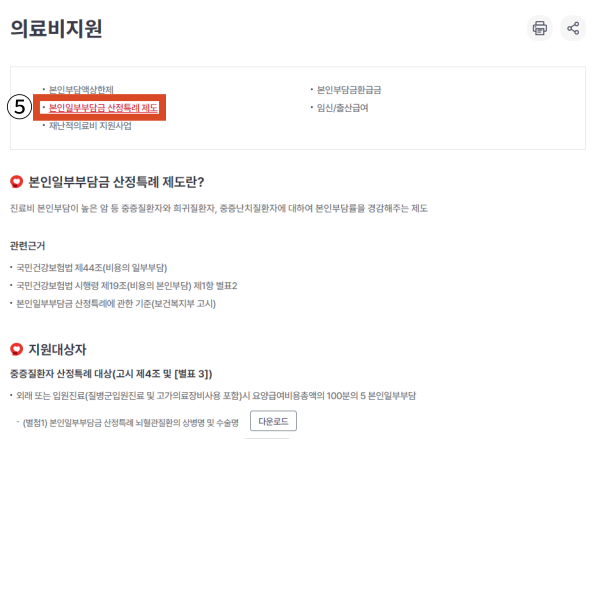 - [본인일부부담금 산정특례 제도] 클릭