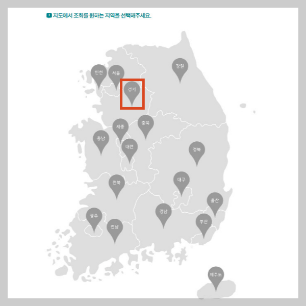 전국 지도가 보이면 본인이 거주하고 있는 지역을 클릭합니다.