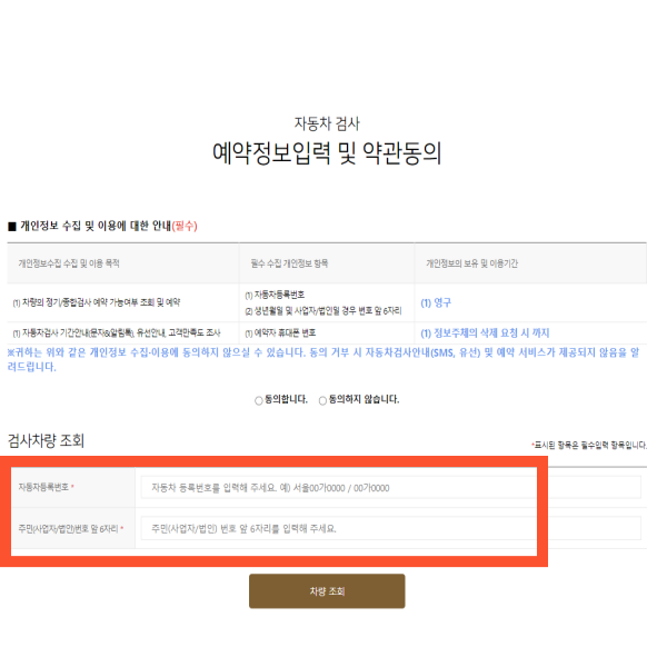 3) 자동차 등록번호와 주민번호 앞 6자리 입력