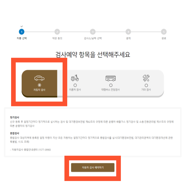 2) "자동차검사 예약" 버튼 클릭 - "자동차" 클릭